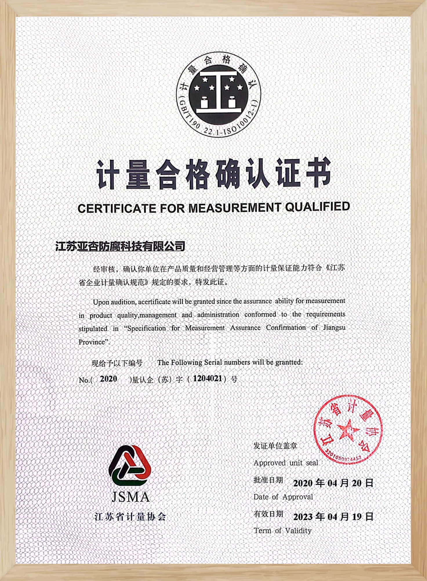 計(jì)量合格確認(rèn)證書